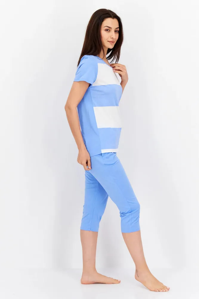 Свободные капри и футболка с коротким рукавом позволят Вам чувствовать себя максимально расслабленно и уютно. А контрастные сочетания цветов подчеркнут стиль и придадут образу яркость.