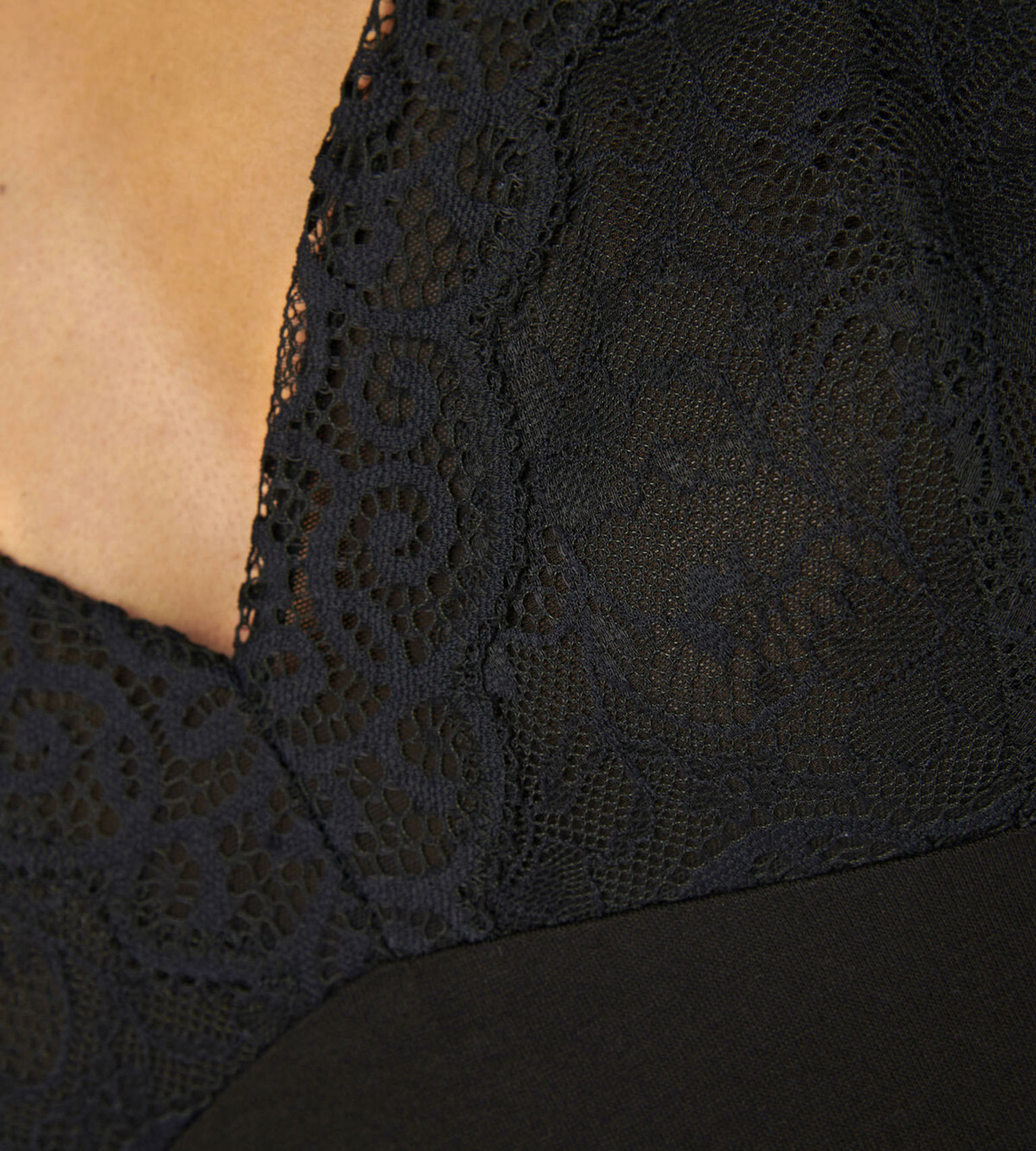 Чашечки изящные и украшены кружевом, резинка под грудью идеально поддерживает даже пышную грудь, а удобный крой обеспечивает свободу движений во время сна.
